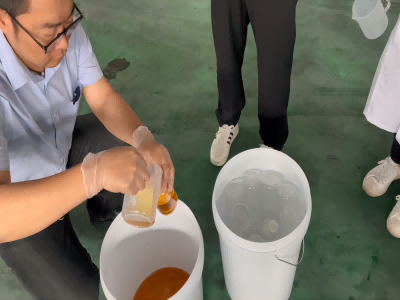 由客戶在生產完成的150噸藥劑中隨機抽取,取樣、裝入封裝瓶、貼標簽、確認無誤后郵寄送第三方檢測。
